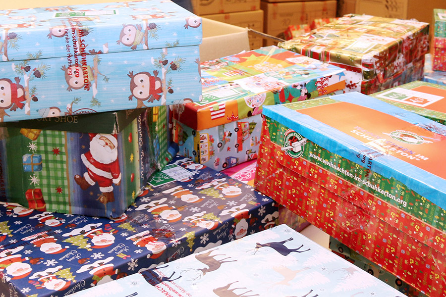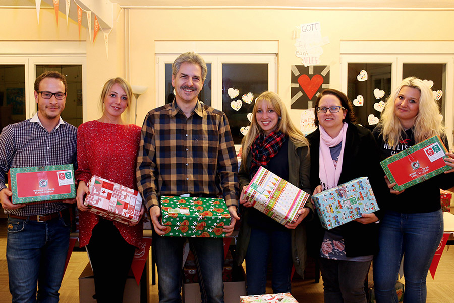 »Der Auftrag von Weihnachten im Schuhkarton ist, bedürftigen Kindern weltweit Gottes Liebe greifbar zu machen und mit Kirchengemeinden vor Ort die gute Nachricht von Jesus Christus weiterzugeben.«, heißt es im Aktionsbericht zu Weihnachten im Schuhkarton 2016. 388673 Päckchen gingen Weihnachten 2016 aus dem deutschsprachigen Raum an Kinder in Not. In diesem Jahr hatten Sammelstellenleiter Stefan Keil und sein Team Andrea Pritz, Vanessa Fröhlich, Stefanie und Talia Marenbach sowie Robin Cousin wieder alle Hände voll zu tun.