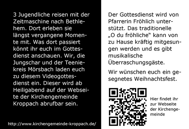 Eine Reise nach Bethlehem – Gottesdienst und KrippenspielAllgemein / 24. Dezember 2020 24. Dezember 2020 von Jungschar und Teeniekreis Mörsbach Wir bedanken uns bei Allen, die bei diesem Gottesdienst mitgeholfen haben!