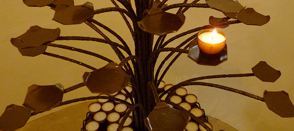 Ab sofort besteht auch die Möglichkeit zum persönlichen Gebet an unserem neuen „Kerzenbaum“ ein Licht anzuzünden.