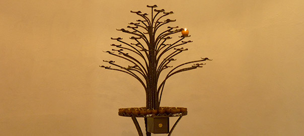 Jedes angezündete Licht an unserem Kerzenbaum steht für ein Gebet, für das Anliegen eines Menschen. Es zeigt den anderen Gläubigen: Hier war jemand, der im Gebet Hilfe suchte. Die brennende Kerze ist Zeichen des Gebets, über das gesprochene Wort hinaus.